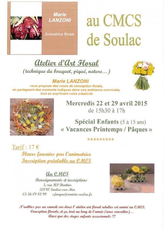 Atelier d'art floral (technique du bouquet, piqué, nature, ...) proposé par Marie Lanzoni au CMCS (Centre Municipal Culturel et Sportif).