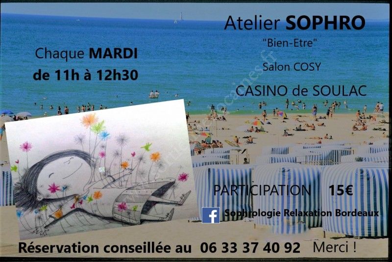 Véronique Planchard vous propose un atelier sophrologie tous les mardis, dans la salle "le Cosy"de 11h00 à 12h30.