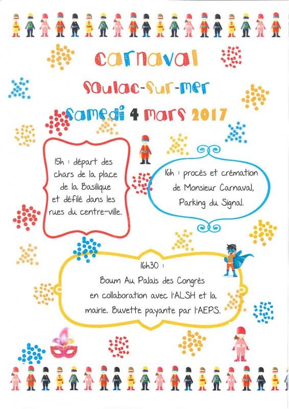 - 16h00 : procès et crémation de Monsieur Carnaval, parking du Signal.