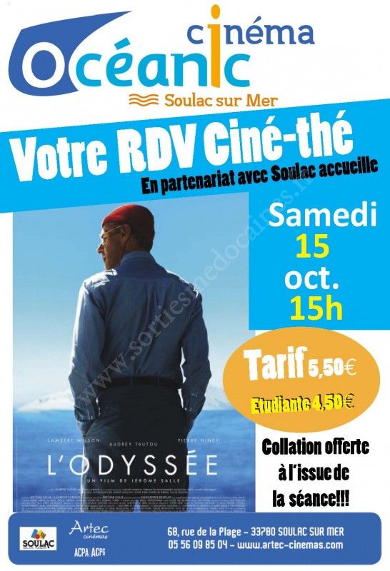 Ciné Thé avec la projection du film "L'Odyssée", de Jérôme Salle, avec Lambert Wilson, Pierre Niney, Audrey Tautou, ...