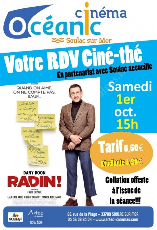 Ciné Thé avec la projection du film "Radin !", comédie française de Fred Cavayé avec Dany Boon, Laurence Arné, Noémie Schmidt, ...