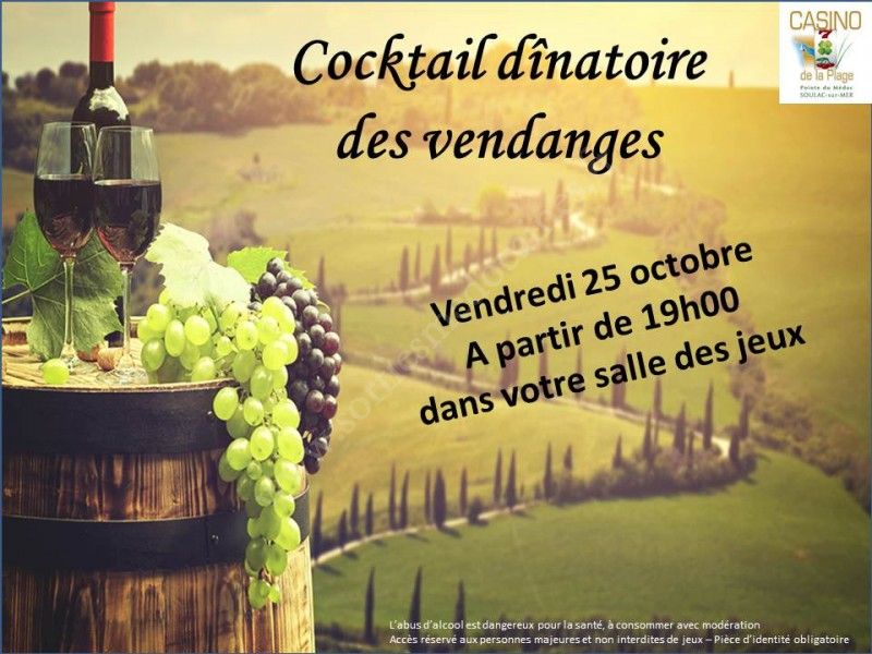 Le Casino de la Plage vous convie à un cocktail dînatoire en l'honneur des vendanges dans sa salle des jeux*.
