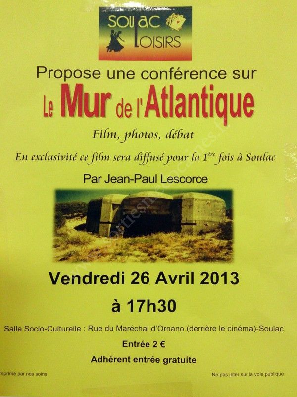 Soulac Loisirs propose une conférence sur le Mur de l'Atlantique (Photos, Film, Débat) par Jean-Paul Lescorce.