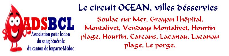 Départ du circuit Océan pour le don de plasma en covoiturage. Le circuit passe par les villes de : Soulac/mer, Grayan l'Hôpital, Montalivet, Vendays Montalivet, Hourtin, Lacanau, Le porge.