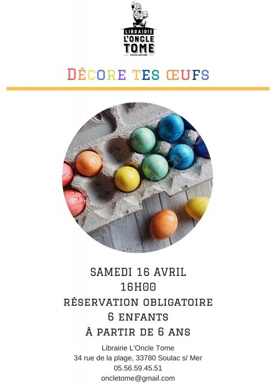 A l'approche de Pâques, la Librairie L'Oncle Tome organisoe une activité de peinture d'œufs.