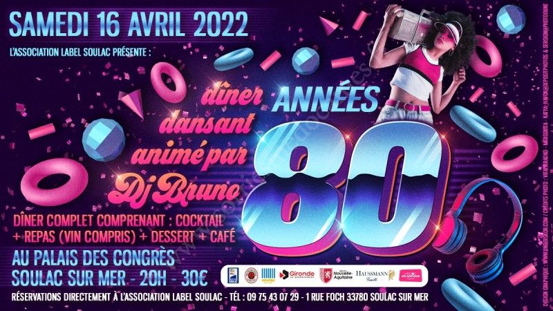 L'association Label Soulac présente "Dîner dansant Années 80" durant le week-end "Le Printemps de Soulac" (plus d'informations en cliquant ici).