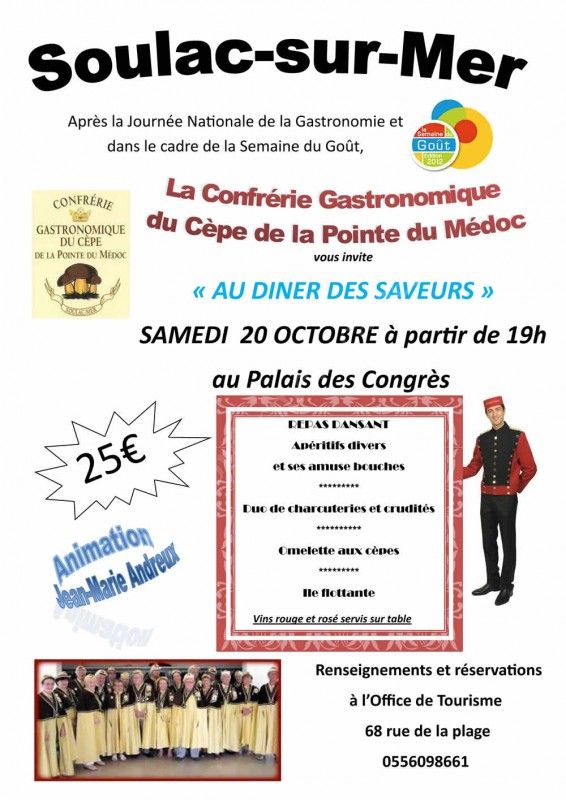 Dans le cadre de la Semaine du Goût, La Confrérie Gastronomique du Cèpe de la Pointe du Médoc vous invite au "Diner des Saveurs".
