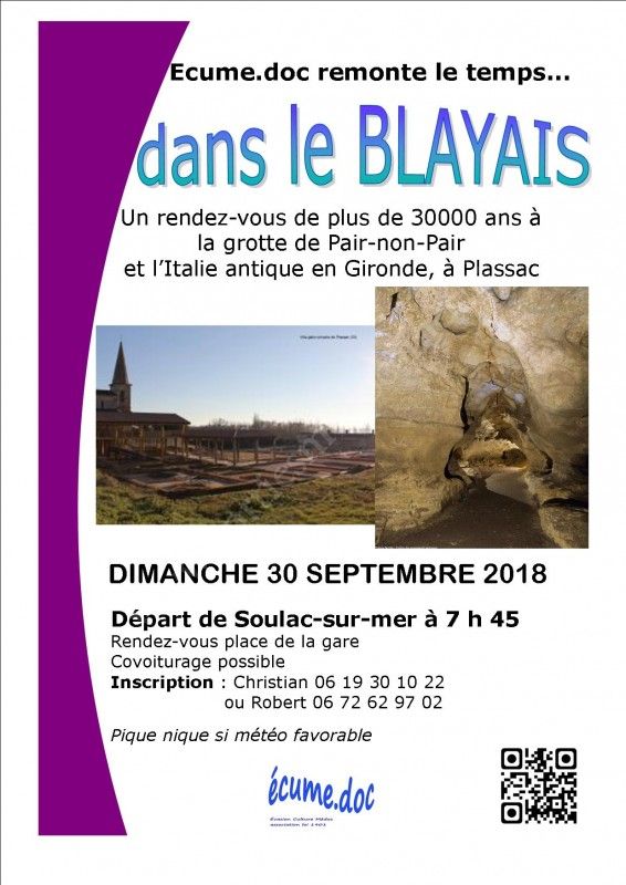 * Aller de Plassac à Prignac et Marcamps, grotte de Pair non Pair : environ 30’
