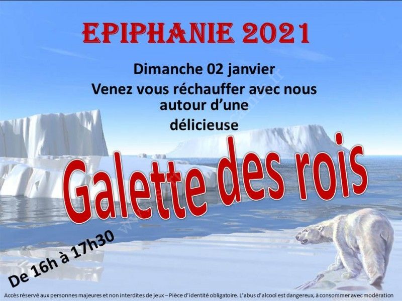 Venez déguster avec nous une délicieuse galette des rois accompagnée d’une coupe de blanc de blanc brut ou d’un jus de fruit.