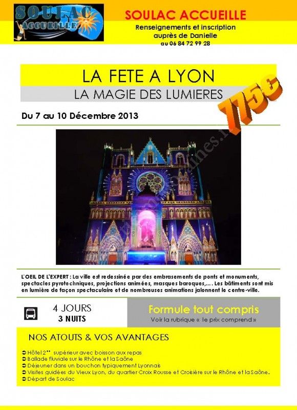 Soulac Accueille vous propose un voyage de 4 jours et 3 nuits à Lyon afin d'assister à la Fête des Lumières.