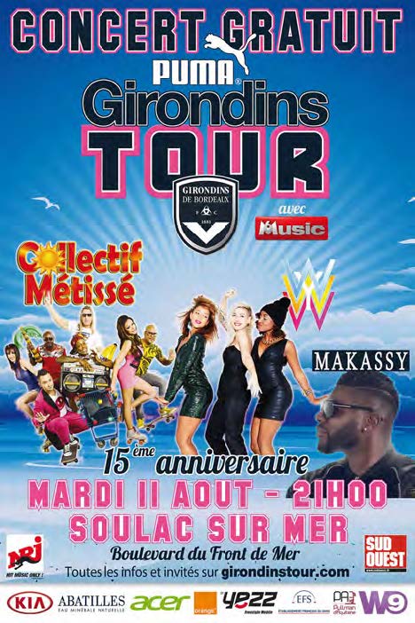 Le Girondins Tour PUMA ou la Tournée Atlantique du FC Girondins de Bordeaux c’est LA tournée foot N°1 en France ! Depuis l’an 2000, le FC Girondins de Bordeaux invite tous les estivants, de Royan à Hendaye en passant par le Bassin d’Arcachon et Chatelaillon, à vivre au rythme du football pendant trois semaines tous les étés ! L'année 2015 nous réserve une cuvée spéciale puisque le Girondins Tour PUMA fête ses 15 ans !