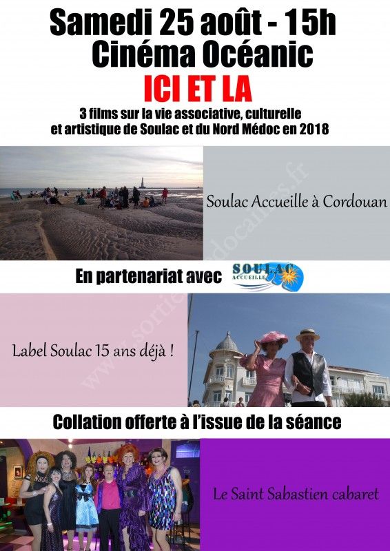 Le Cinéma Océanic vous propose une séance CINÉ THÉ inédite avec la projection de trois films documentaires réalisés par Jules Lambert sur la vie associative, culturelle et artistique de Soulac et du Nord Médoc en 2018 :