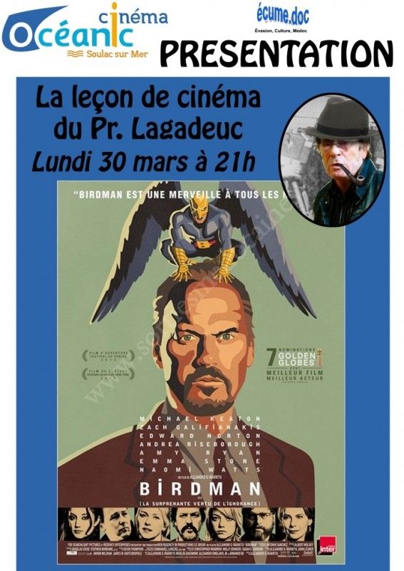 "La Leçon de cinéma du Pr Lagadeuc" à l'occasion de la projection du film "Birdman" de Alejandro Gonzalez Iñarritu qui a reçu, aux Oscars 2015, 4 récompenses dont celles du meilleur film et du meilleur réalisateur.