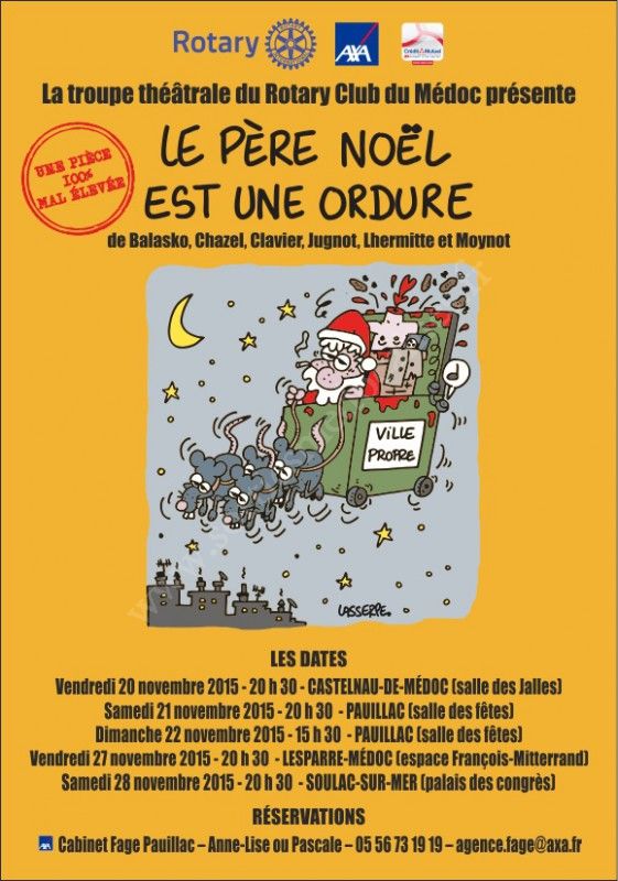 Le Père Noël est une Ordure par la troupe théâtrale du Rotary Club du Médoc.