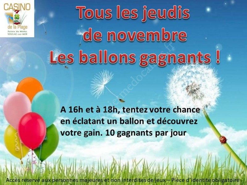 Tous les jeudis du mois de novembre, venez éclater un ballon et gagnez le cadeau noté à l'intérieur.