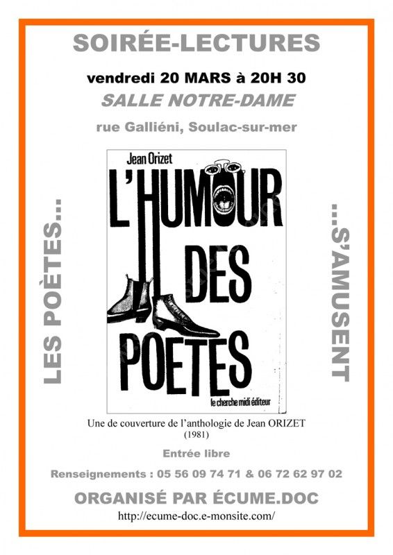 "Les poètes s'amusent" : satire, humour, malice, drôlerie seront à l'honneur. De Queneau à Tardieu, de Desnos à Hugo, les poètes s'amusent du sens, des mots, des situations, des répétitions.
