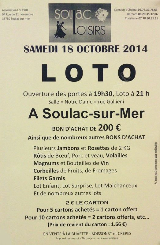 Loto organisé par Soulac Loisirs.