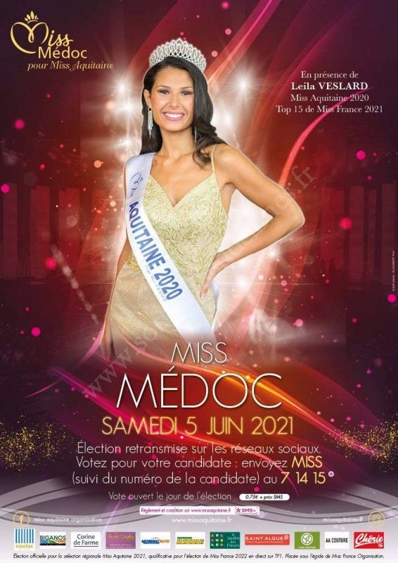 Le vote de déroulera par SMS le samedi 5 Juin 2021 à partir de 07h00 jusqu’à la clôture annoncée en direct pendant la cérémonie, à l’occasion de la diffusion de la soirée de l’élection de Miss Médoc 2021 pour Miss Aquitaine 2021 sur la page Facebook "Miss Aquitaine Organisation"