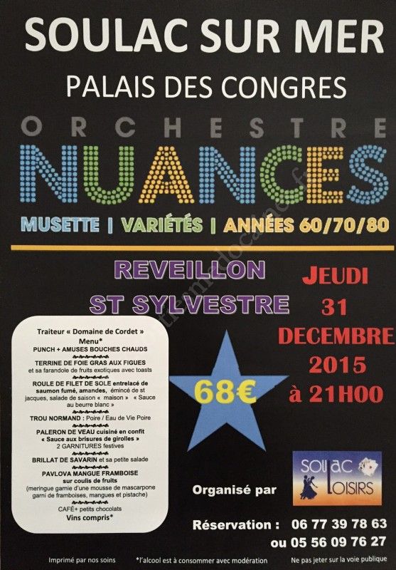 Réveillon de la Saint-Sylvestre organisé par Soulac Loisirs et animé par l'orchestre Nuances.