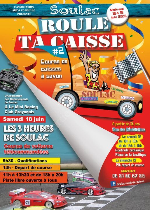 Le samedi 17 septembre, le Club Mrcg organise les 3h de Soulac, une course d'endurance 1/10 piste électrique par équipe de 2 à 3 pilotes, sur le parking de la Basilique Notre Dame.