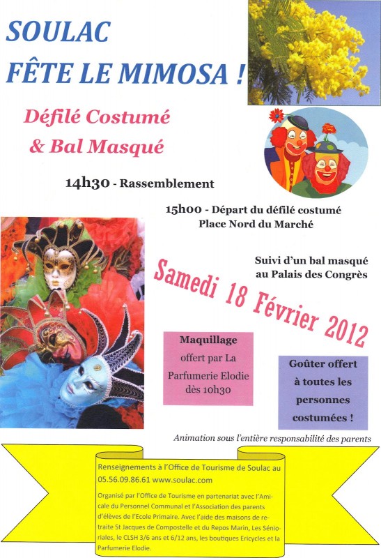 14h30 : Défilé costumé devant la place Nord du marché suivi d’un Bal Costumé au Palais des Congrès.