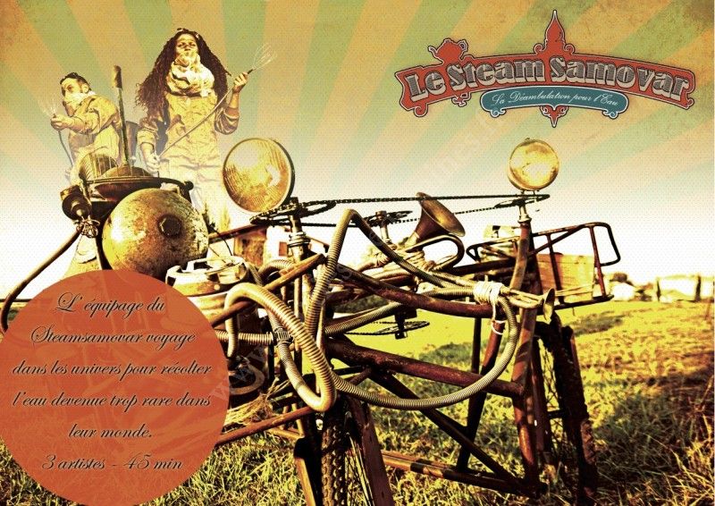 Le steamsamovar : machine, quadricycle réalisé à la main avec des matériaux de récupération.