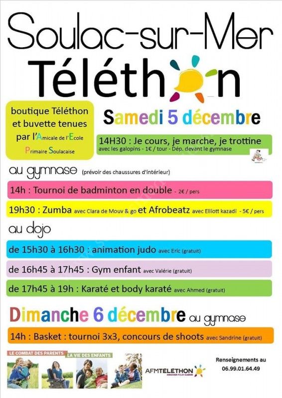 Venez participer aux diverses animations au profit du Téléthon.