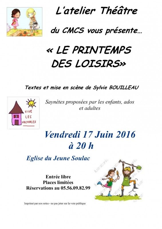 Les adhérents de la section, feront une représentation "le printemps des loisirs" à l'église du jeune soulac.