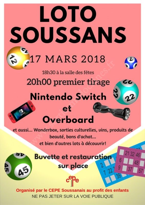 Le 17 Mars 2017, le CEPE Soussanais organise un loto au profit des enfants de Soussans!