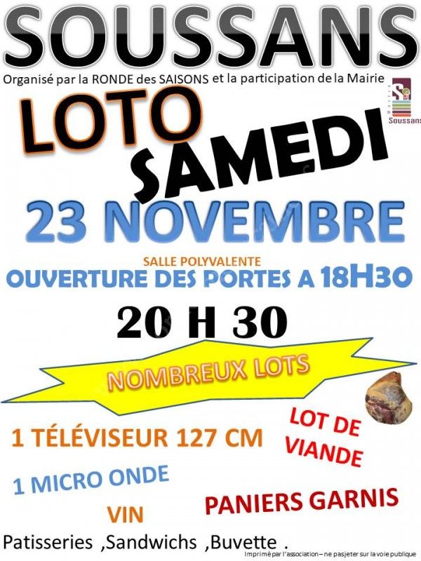 Loto organisé par la ronde des saisons et la participation de la mairie