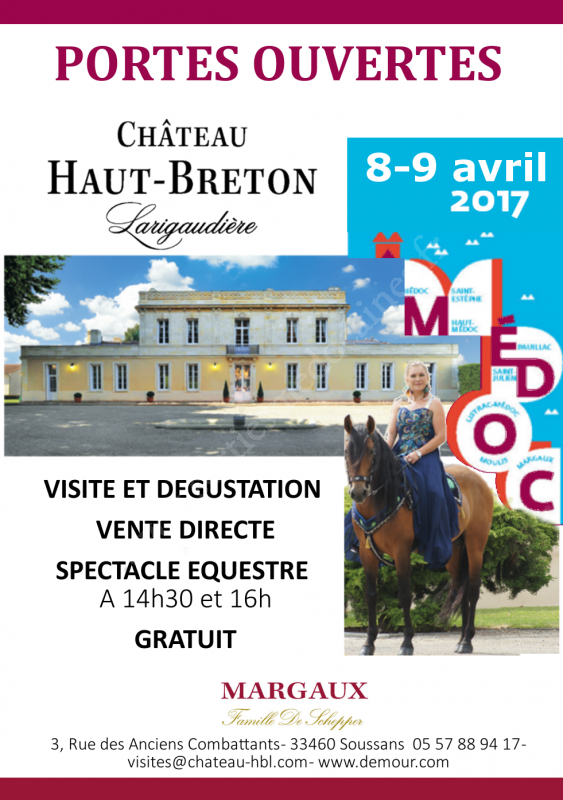 La Famille De Schepper et toute l'équipe du Château Haut Breton Larigaudière vous accueillent pour 2 jours de découvertes, d'échanges et d'animations dans le cadre des Portes Ouvertes des châteaux du Médoc les 8 & 9 avril 2017.