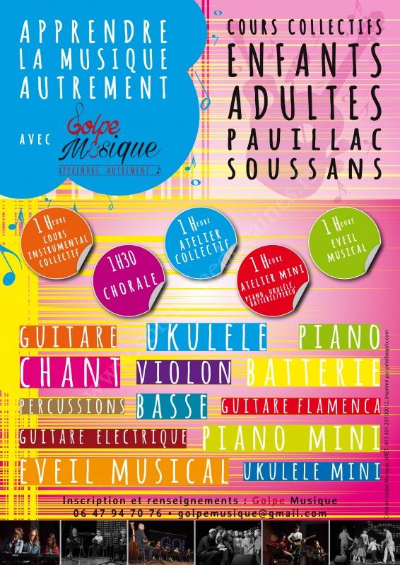 Le samedi 16 septembre 2017, à l'occasion du forum des associations de Soussans, l'association GOLPE MUSIQUE vous propose d'ouvrir ses portes !!!