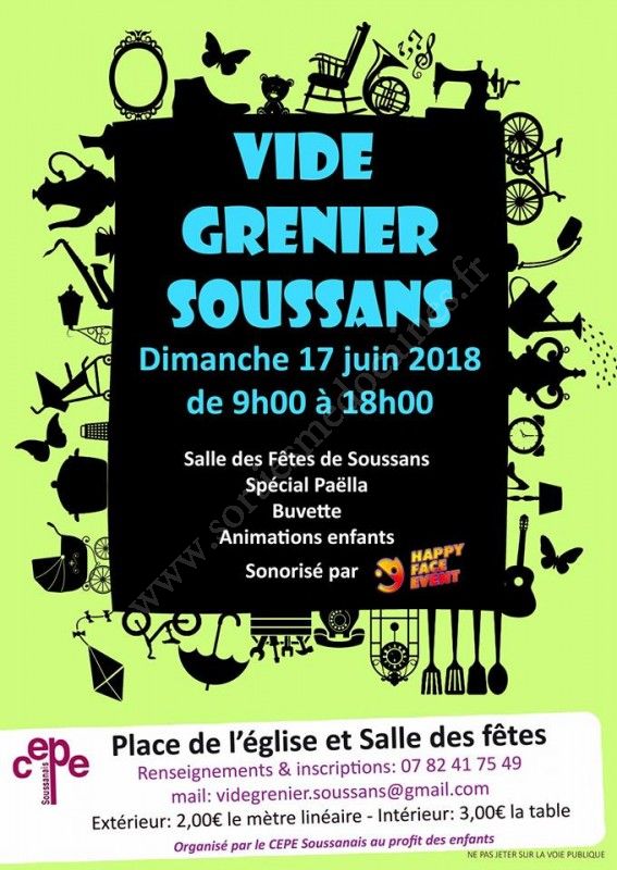 Vide Grenier de Soussans à la salle des fêtes ainsi que sur la place de l'église.