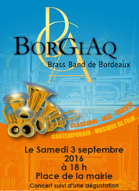 Le Brass Band BorGiAq (Bordeaux, Gironde, Aquitaine), créé par Pierre DUTOT, est actuellement en résidence à Talence. Il compte 35 musiciens parmi lesquels on trouve des professionnels, des étudiants du Conservatoire à Rayonnement Régional de Bordeaux et des conservatoires et écoles de musique de la région et des amateurs confirmés.