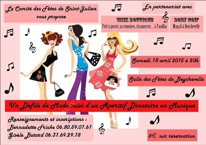 Le Comité des Fêtes de Saint-Julien vous propose un défilé de mode suivi d'un apéritif dinatoire en munsique.