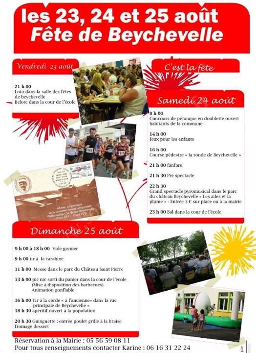- 22h30 : Feu d'artifice pyrotechnique dans le parc du Château Beychevelle "Les Ailes et la Plume". Entrée 3€ sur place ou à la mairie