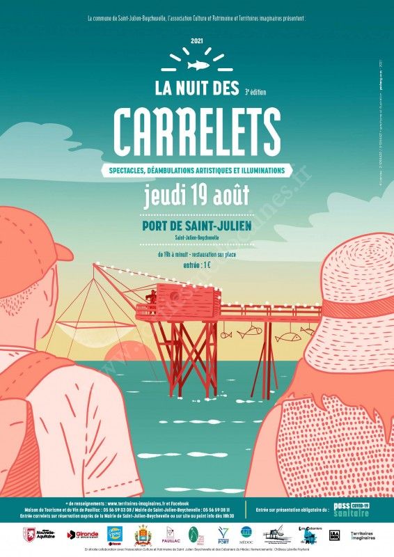 Un port singulier, des carrelets perchés, un estuaire changeant au rythme des couleurs, du ciel et des marées. Des paysages sauvages où l’on aime se reposer. C’est dans ce cadre inspirant que Territoires imaginaires a conçu pour le Port de Saint-Julien une Nuit des carrelets riche d’instants de découverte, de poésie et de contemplation. Commune du Parc Naturel Régional Médoc, Saint-Julien-Beychevelle ouvre les portes de son territoire et invite à la découverte de son patrimoine et de ses carrelets. Une nouvelle rencontre artistique avec les paysages et les carrelets de l’estuaire de la Gironde. Nous vous attendons pour cette 3e édition toute en douceur.
