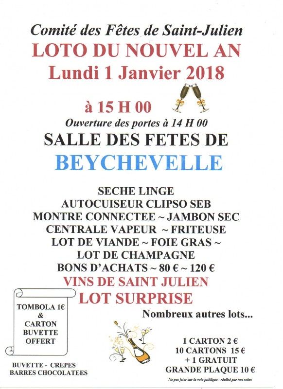 ORGANISE PAR LE COMITE DES FETES DE SAINT JULIEN EN SALLE DES FETES DE BEYCHEVELLE