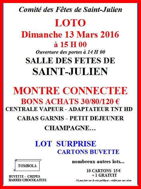 - Lieu : SALLE DES FETES DE SAINT JULIEN