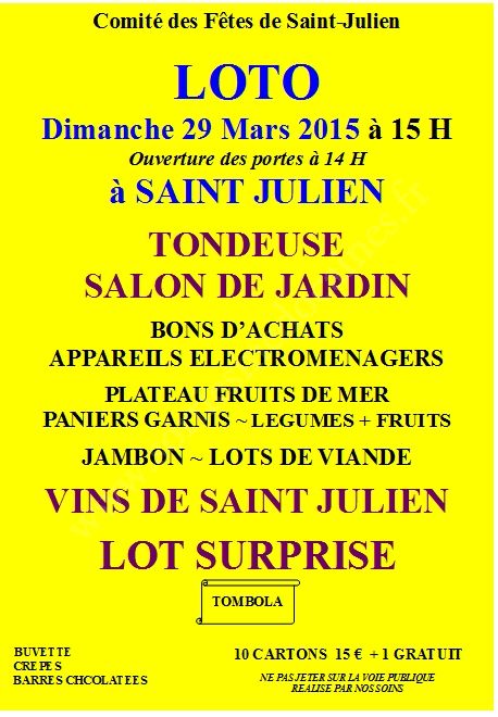 - Lieu : Salle des Fêtes de St Julien
