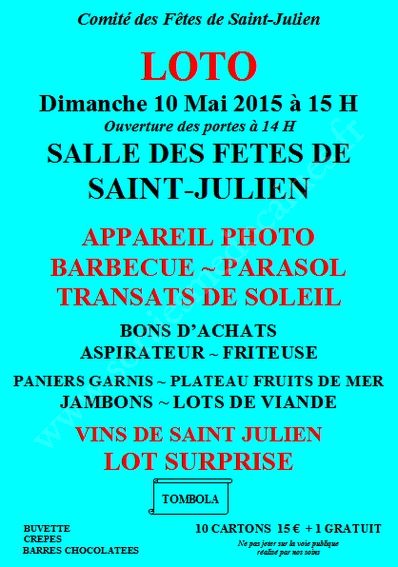 - Lieu : Salle des Fêtes de St Julien