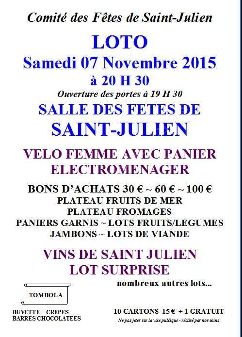 Le Comité des Fêtes de Saint-Julien vous invite à participer à son premier loto de la saison 2015-2016.