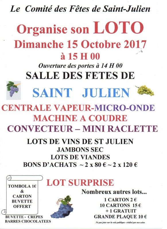 Le Comité des Fêtes de Saint-Julien organise son loto.