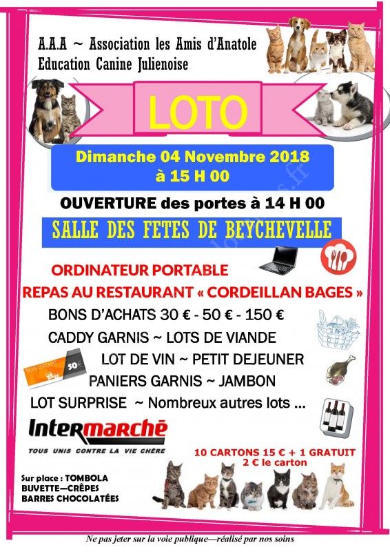 Loto organisé par l'Association les Amis d’Anatole & l'Education Canine Julienoise.
