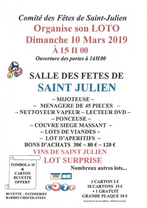Loto organisé par le Comité des Fêtes de Saint-Julien.