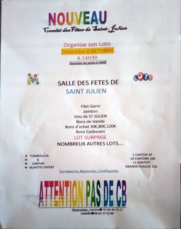 Loto organisé par le Comité des Fêtes de St-Julien.