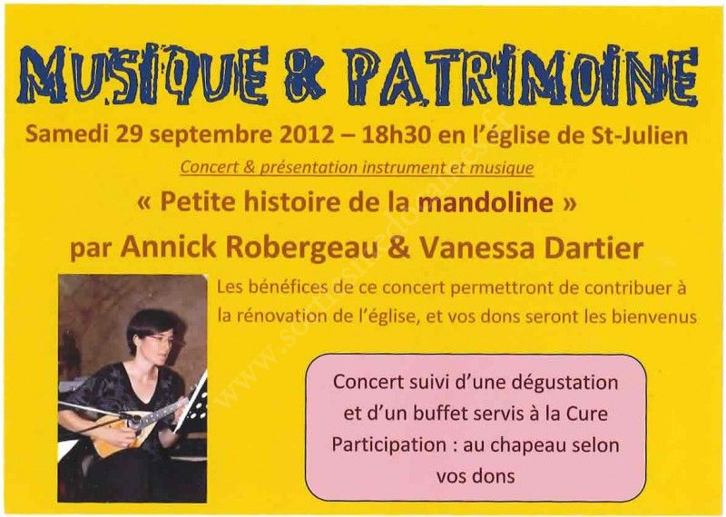 Concert & présentation instrument et musique : "Petite histoire de la mandoline" par Annick Robergeau & Vanessa Dartier.