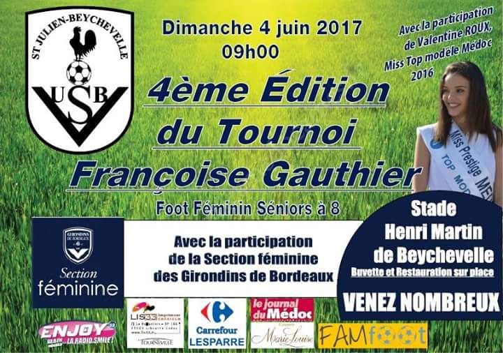 Le club de L'Union Sportive Beychevelle organise le dimanche 4 juin 2017 (toute la journée), la quatrième édition de son tournoi de football féminin à 8 : "Challenge Françoise Gauthier".
