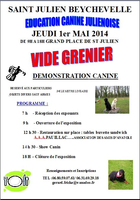 Vide grenier et manifestation canine au profit de l'association de protection animalière de Pauillac et du Médoc Association les Amis d'Anatole (A.A.A) - restauration possible sur place