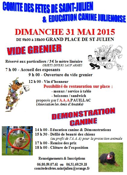 Le dimanche 31 Mai 2015, le Comité des Fêtes de St Julien organise un grand vide grenier.